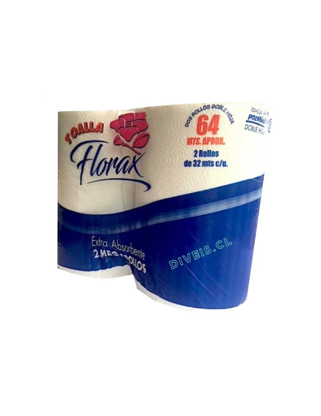 Toalla de Papel Megarrollo Florax doble hoja laminado. Papel: Biodegradable, descartable, no contaminante. Ancho : 20 cms. Absorción : De 1 a 1,5 segundos. . Lámina : Prepicada c/10 cm. Unidad de Venta : Pack 6 bolsas x 2 rollos.